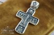 Изображено на кресте: Распятие Христово с предстоящими. Апостол Пётр. Икона Божией Матери Знамение с пророками. Православный крест.Длина: 3.9 см